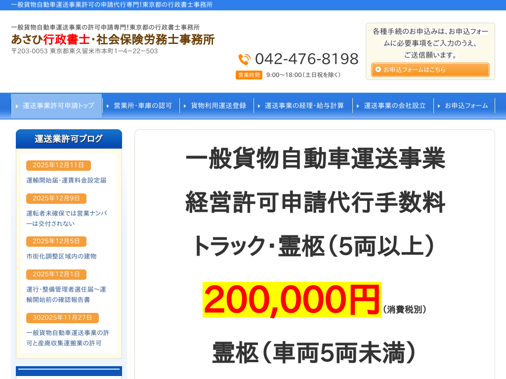 東京の格安一般貨物自動車運送事業許可申請代行専門(東京都東久留米市)