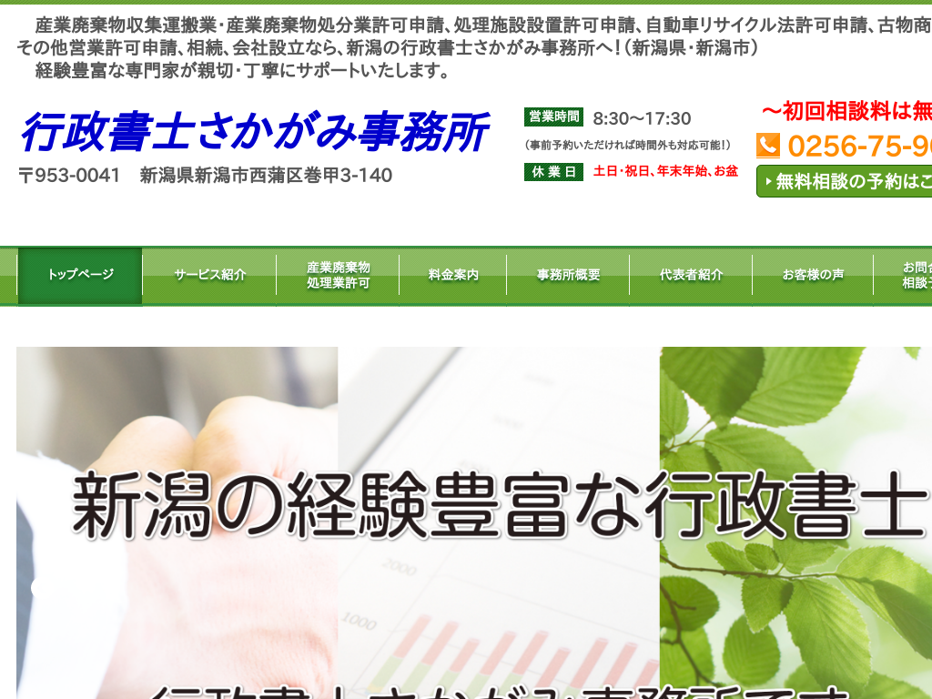 新潟で行政書士事務所をお探しなら、新潟市の行政書士さかがみ事務所にお任せください。当事務所では、相続・遺言、遺産分割協議のご相談をはじめ、産業廃棄物収集運搬業許可申請、自動車リサイクル法許可申請等の各種許認可、会社設立サポートなど、経験豊富な行政書士が親切・丁寧に対応いたします。お気軽にご相談ください。